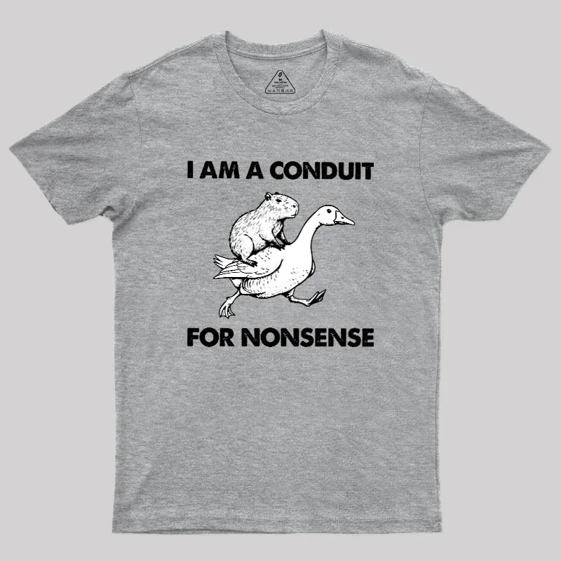 The phrase “I am a conduit for nonsense” resonates especially with those who live online, laugh at absurd humor, and thrive in conversations that bounce from science fiction trivia to surreal memes in seconds. This T-shirt is more than decoration—it’s a badge that signals membership in the geek club, an inside joke for those fluent in the language of weirdness.