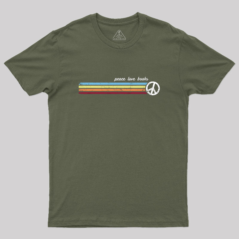 Retro Stripes Peace Love Books T-Shirt