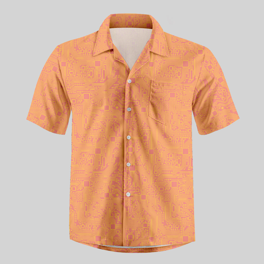 Computer Circuit Board Orange Button Up Pocket Shirt