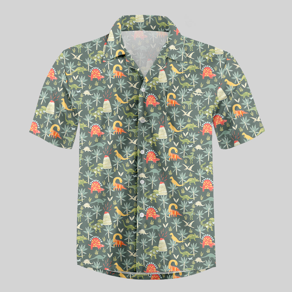 Dinosaur Primordial Forest Button Up Pocket Shirt
