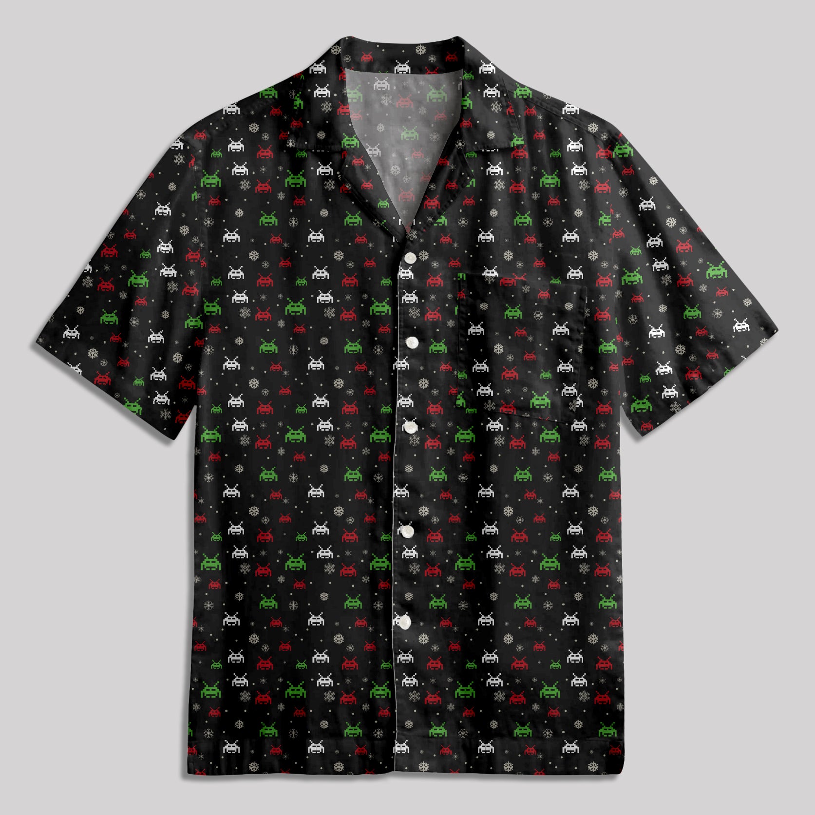 Christmas Retro Game Elements Button Up Pocket Shirt