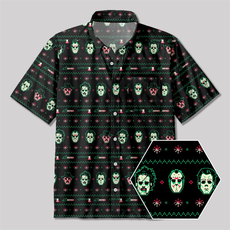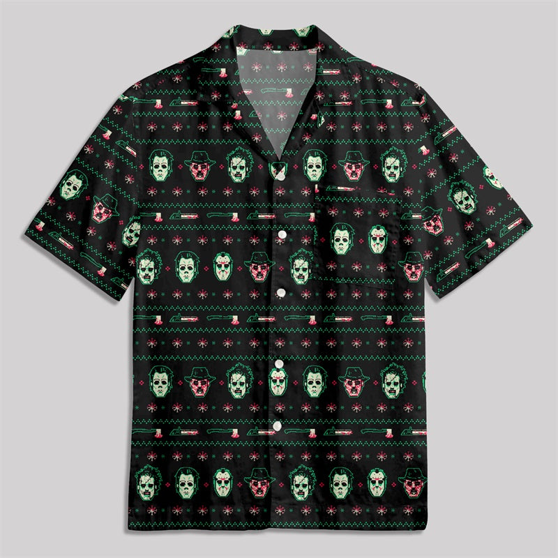 Christmas Hockey Mask Button Up Pocket Shirt