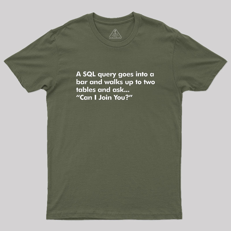 A SQL Query Goes Into A Bar Geek T-Shirt