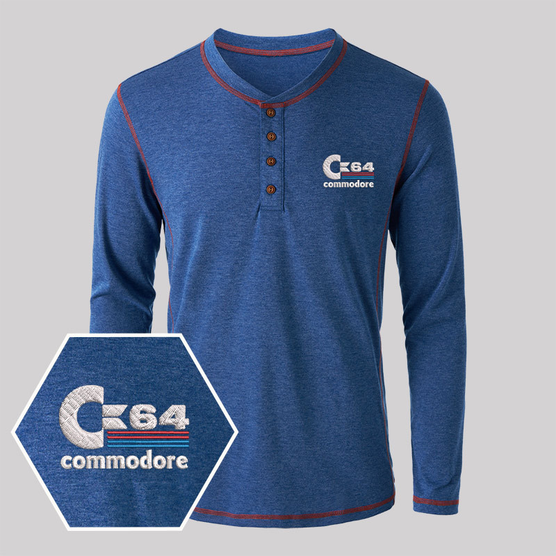 C64 Embroidered Long Sleeve Henley Shirts