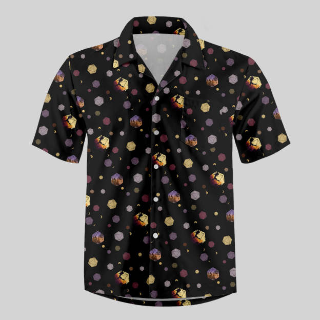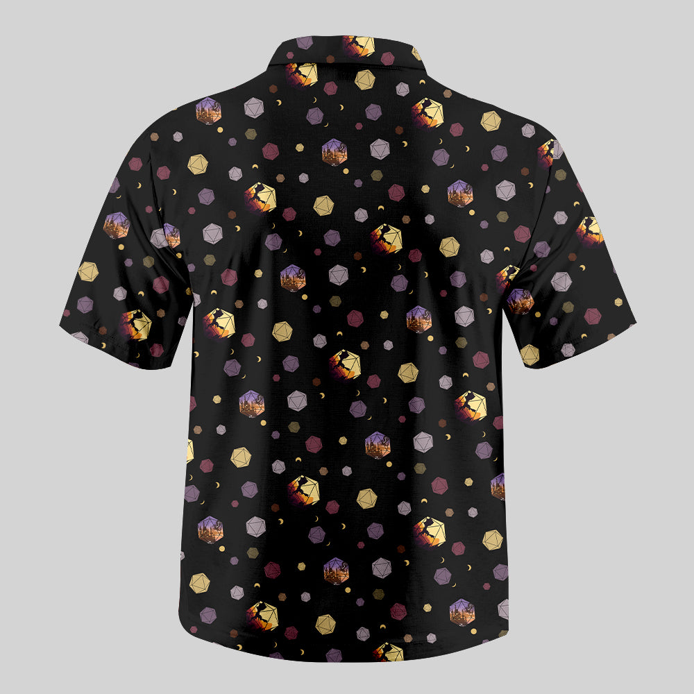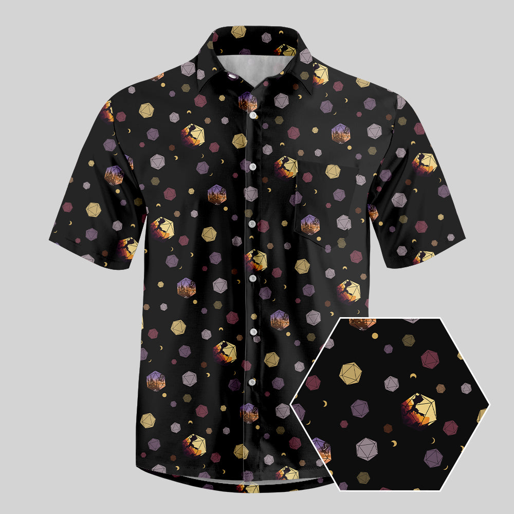 DND Moon and Colorful Dice Button Up Pocket Shirt