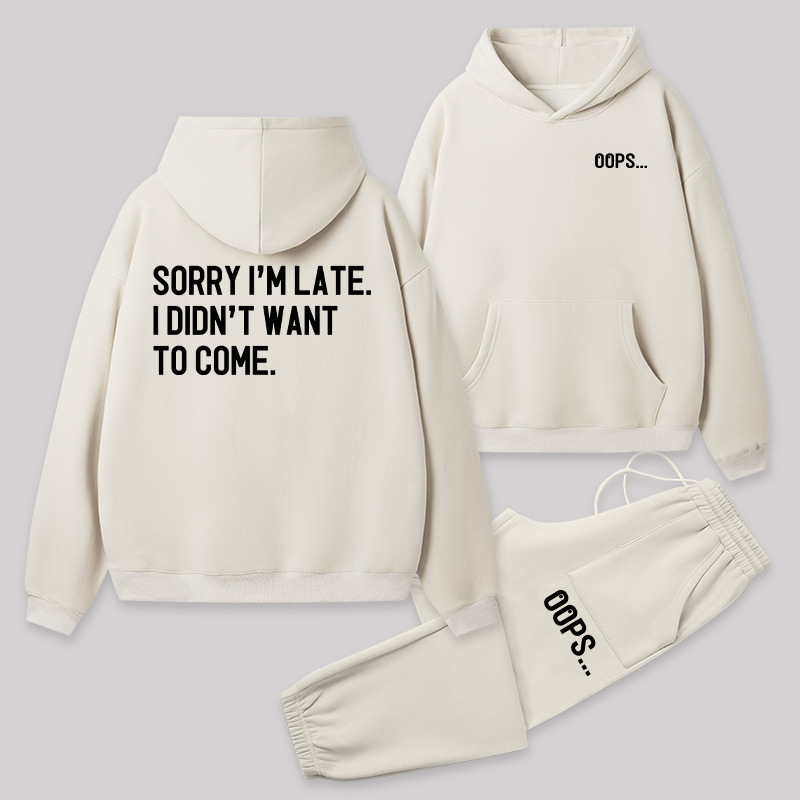 Sorry Im Late Front and Back Printed Geek Fleece Hoodie Set