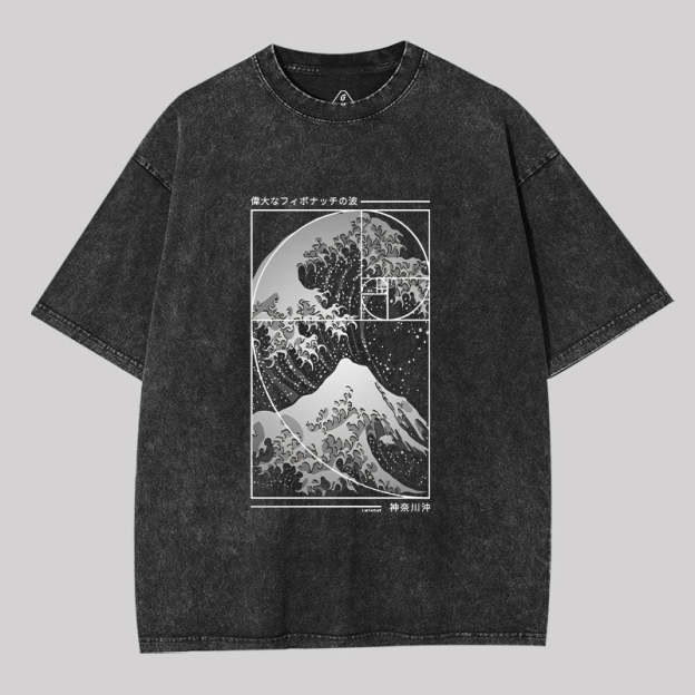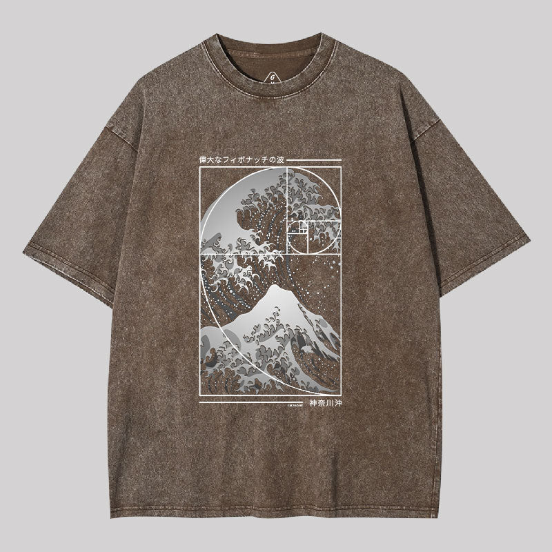 The Great Wave Of Fibonacci Spiral Washed T-shirt