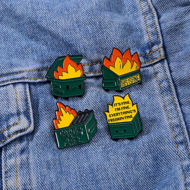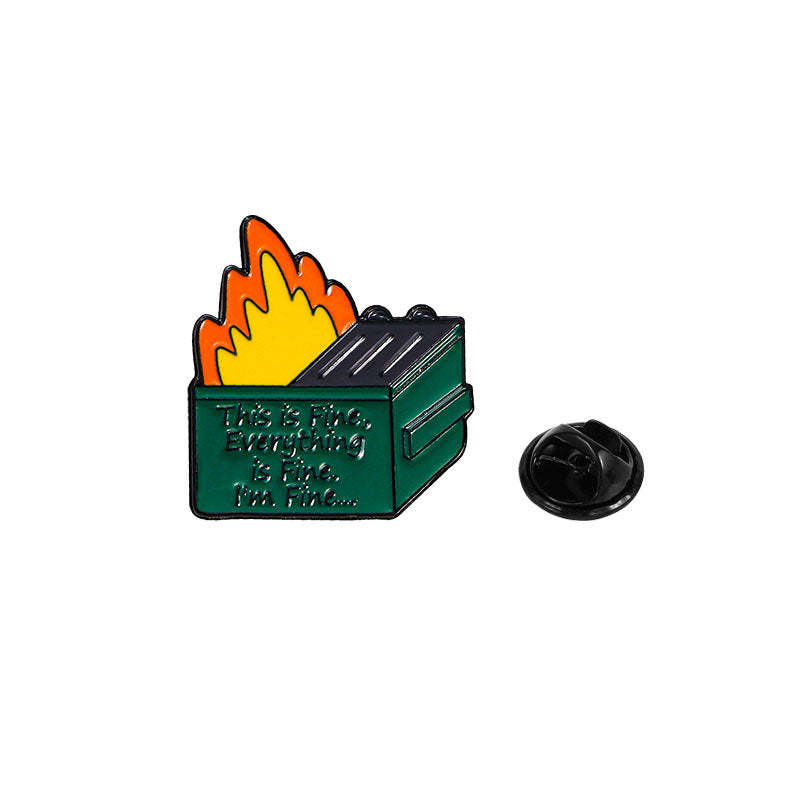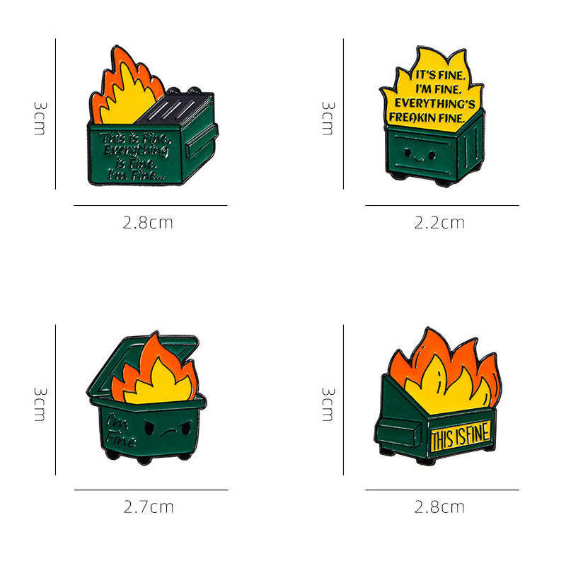 Trash Can Fire Man Funny Pins