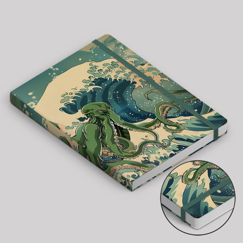 Ukiyoe Waves Cthulhu Green Notebook